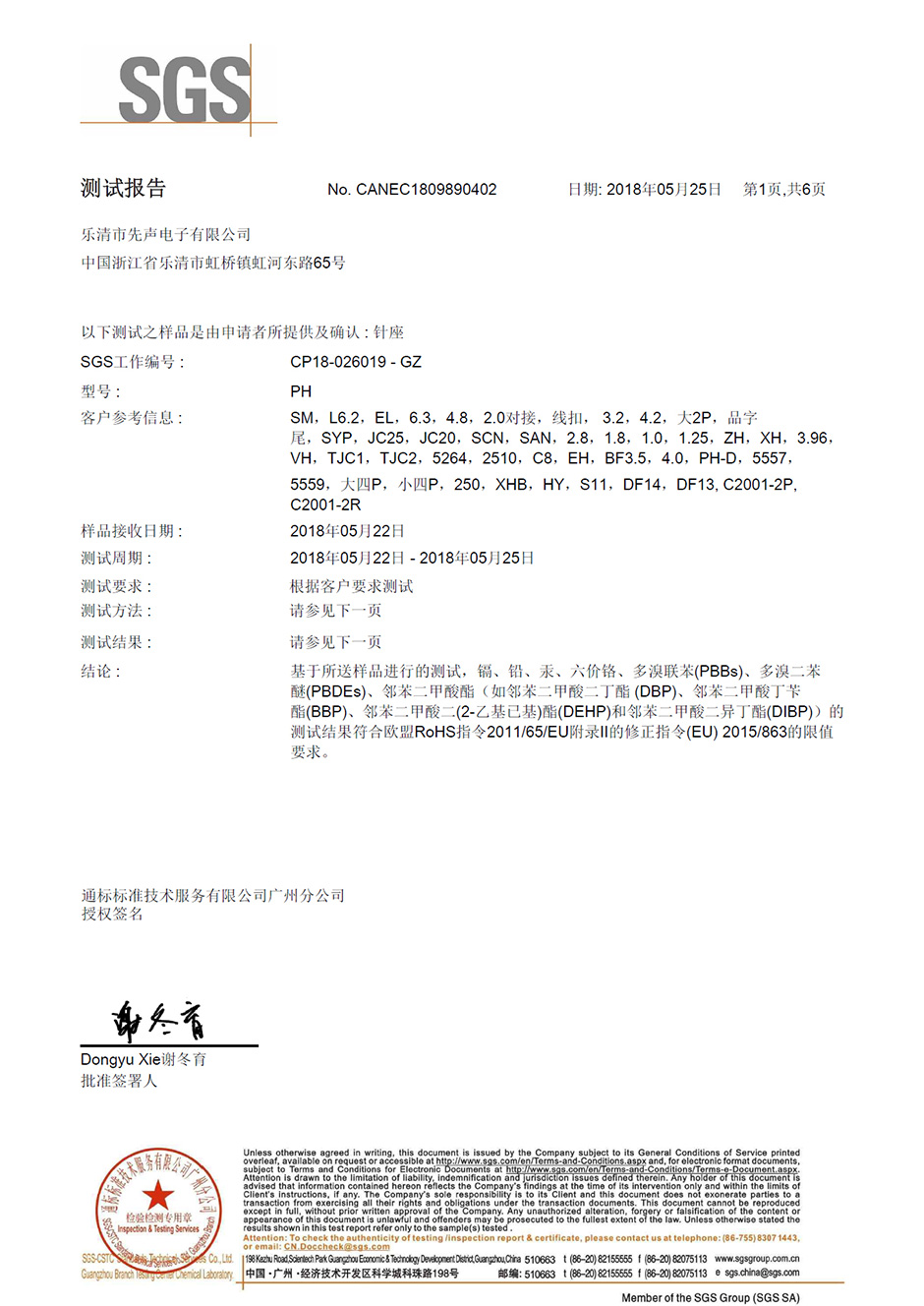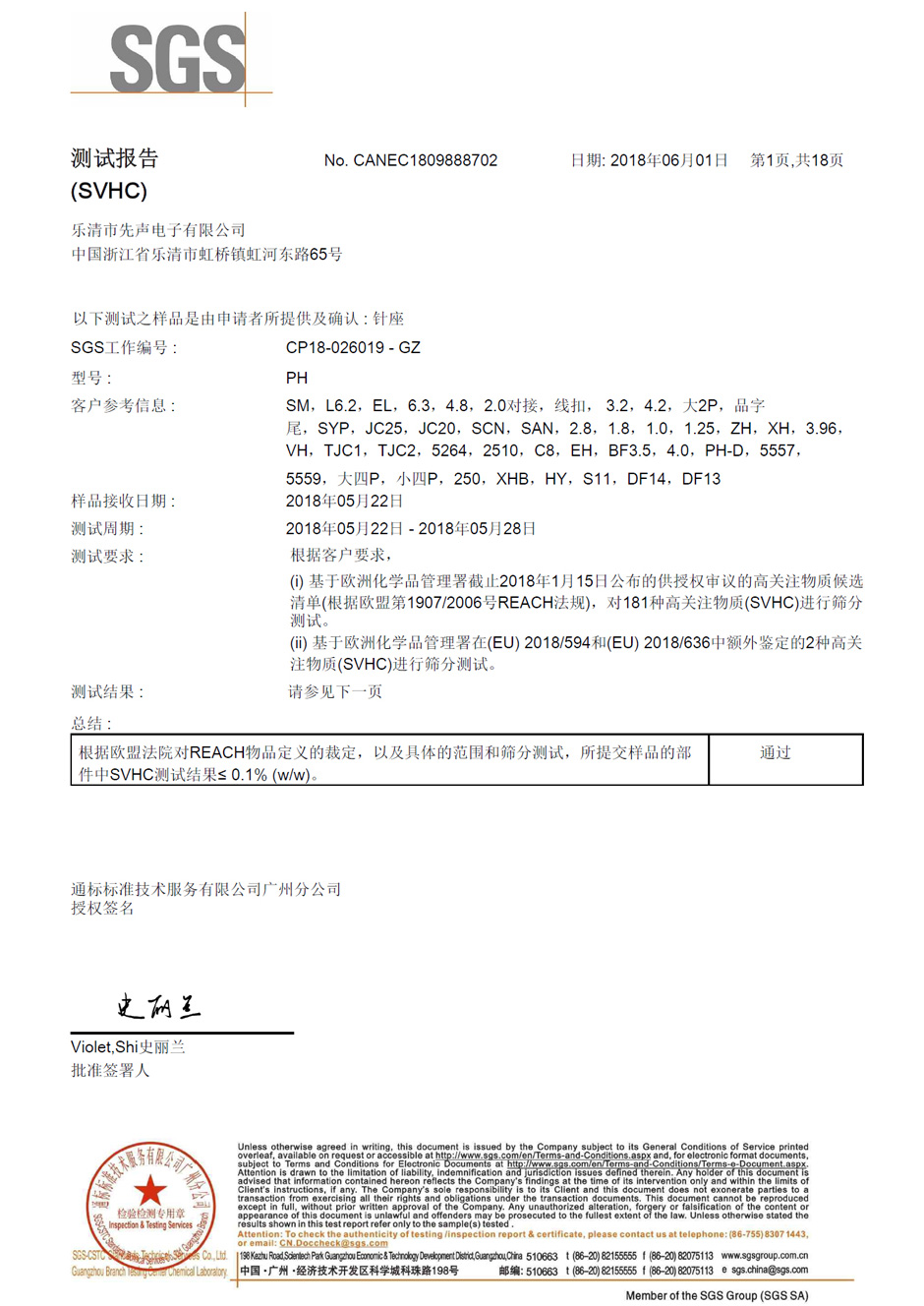 SGS環保認證報告